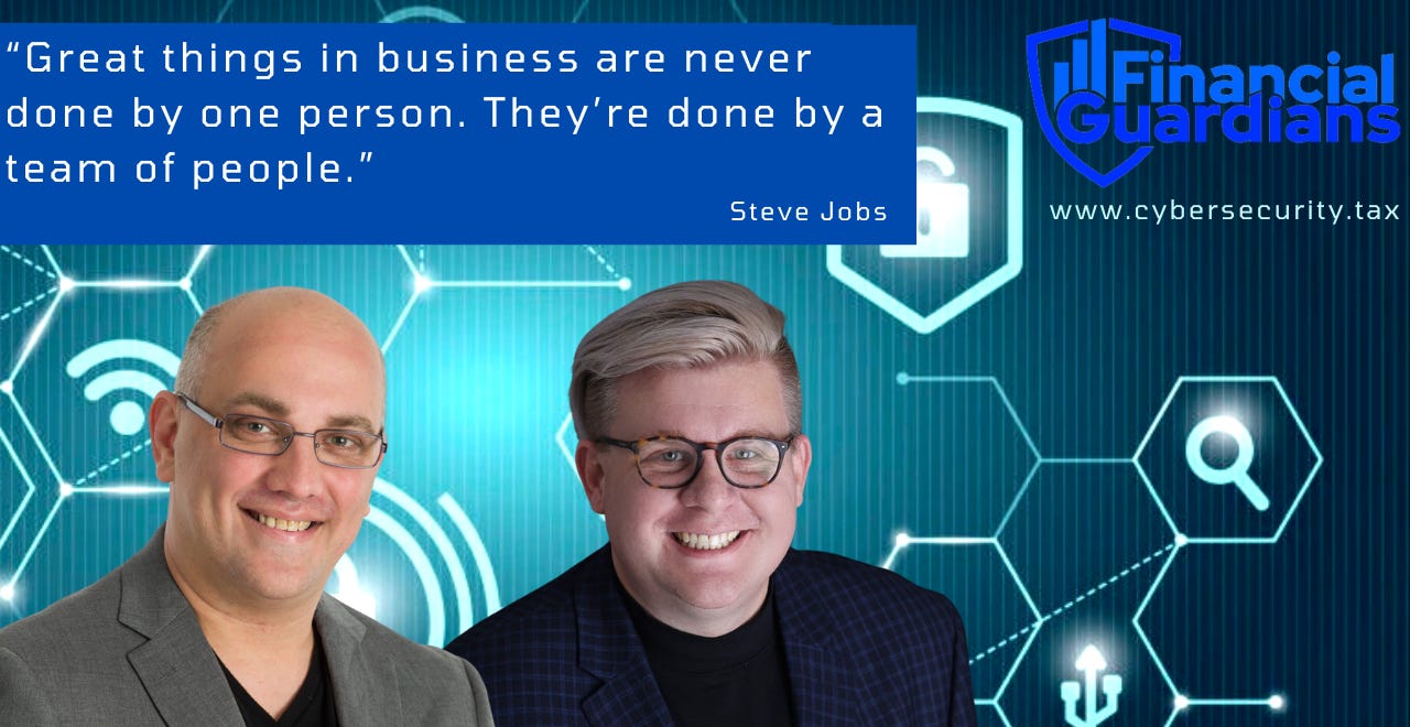 Financial Guardians’ Leadership Team consists of Brad Messner, MBA, CBSA, EA and Joshua Youngblood, EA, CRETS. Brad is a seasoned technologies and finance/tax expert with nearly thirty years of experience in both industries, particularly focused on securing client and confidential data. Josh is an experienced technologist and tax expert with nearly 20 years, focused on unique and efficient use of technology in professional organizations. Find out more about them here: